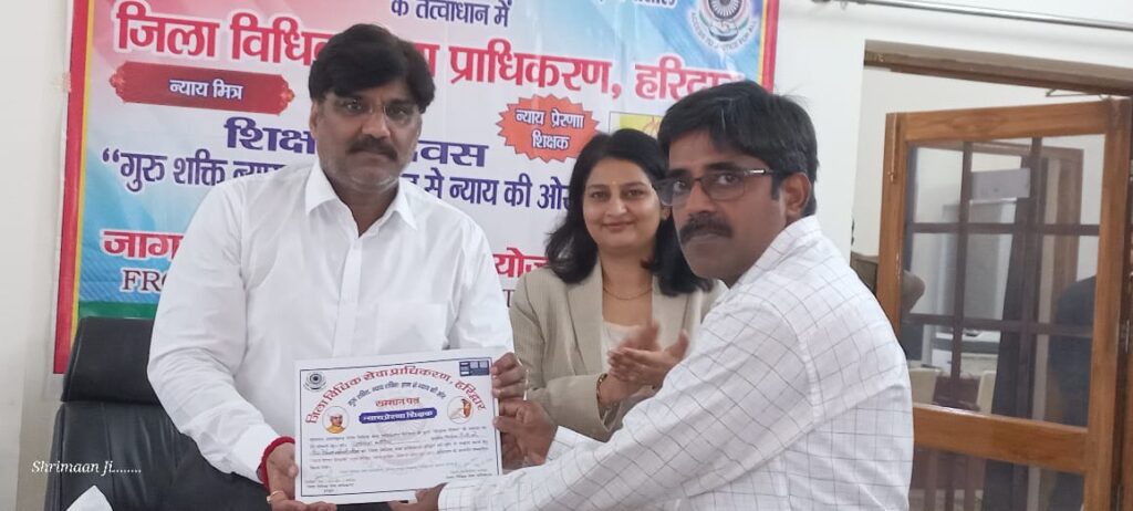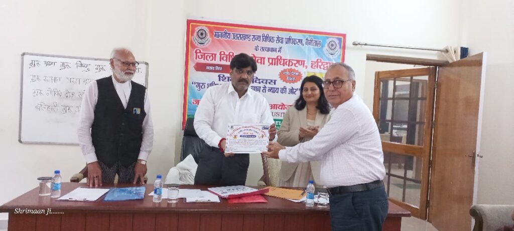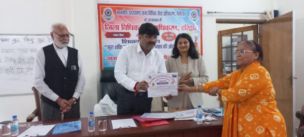 “The Justice Inspiration Teacher Guru Shakti program was held in Haridwar.”District Judge Narendra Dutt honored teachers in Haridwar.”Guru Shakti Justice Shakti: An important program of the District Legal Services Authority in Haridwar.””Teachers in Haridwar were given the message of respect and judicial awareness.”The District Legal Services Authority, Haridwar, honored teachers at the Justice Inspiration program.A program was held in Haridwar as part of the Justice Inspiration Teacher Guru Shakti Justice Shakti campaign, “From Knowledge to Justice.”