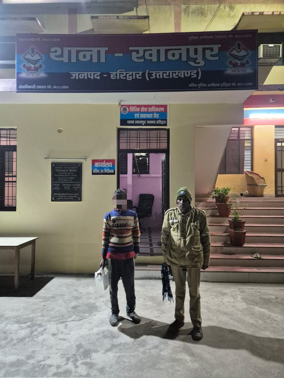 पंडित दिव्यांश शर्मा स्वतन्त्र पत्रकार हरिद्वार, 25 नवंबर। हरिद्वार – “नशा‑मुक्त उत्तराखण्ड” अभियान के अंतर्गत वरिष्ठ पुलिस अधीक्षक हरिद्वार के निर्देश पर जनपद के सभी थाना प्रभारियों को मादक पदार्थों के अवैध निर्माण, वितरण एवं बिक्री पर निरंतर छापेमारी करने के आदेश दिए गए हैं। इस क्रम में, थाना खानपुर को विशेष रूप से चिन्हित क्षेत्रों में अवैध शराब निर्माण व प्रचलन को रोकने हेतु ड्रोन कैमरों सहित सतर्कता बरतने का निर्देश मिला था। 24 नवंबर 2025 की शाम, खानपुर पुलिस को मिली सटीक सूचना के आधार पर, पुरकाजी बार्डर के सीमावर्ती क्षेत्र में नियमित चेकिंग के दौरान एक व्यक्ति को 5 लीटर अवैध कच्ची शराब के साथ हिरासत में लिया गया।आचरणकर्ता: बोबी पुत्र जगत सिंह, उम्र 48 वर्ष, निवासी ग्राम तुगलपुर, थाना खानपुर, जनपद हरिद्वार।बरामदगी: 5 लीटर अवैध कच्ची शराब।पुलिस ने आरोपी के विरुद्ध नियमानुसार अभियोग पंजीकृत कर आवश्यक विधिक कार्रवाई शुरू कर दी है। इस कार्रवाई को “नशा‑मुक्त उत्तराखण्ड” अभियान की सफलता के रूप में देखा जा रहा है, और आगे भी इसी प्रकार की छापेमारी जारी रखने की बात कही गई है।यह घटना जनपद में अवैध शराब के खिलाफ पुलिस की त्वरित और प्रभावी प्रतिक्रिया का प्रमाण है, जिससे स्थानीय जनता में सुरक्षा एवं कानून के प्रति विश्वास बढ़ेगा।